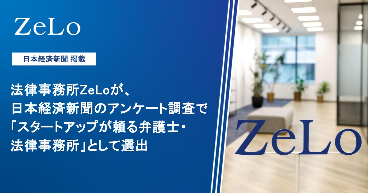 法律事務所ZeLoが、日本経済新聞のアンケート調査で「スタートアップが頼る弁護士・法律事務所」として選出