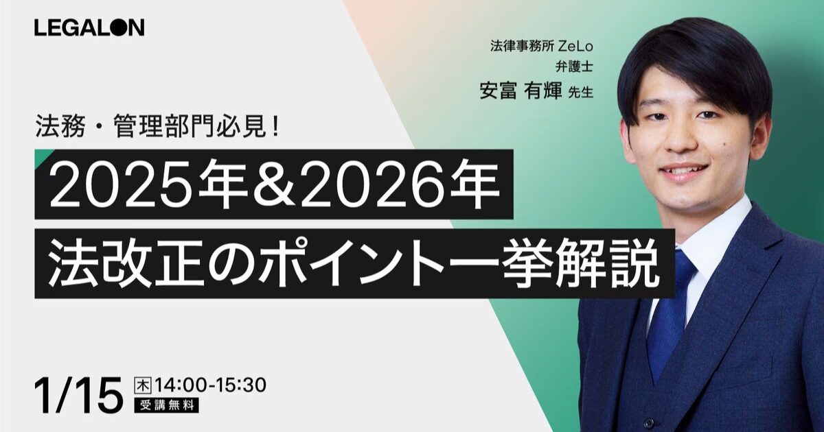 セミナー「法務・管理部門必見! 2025年&2026年 法改正のポイント一挙解説」について