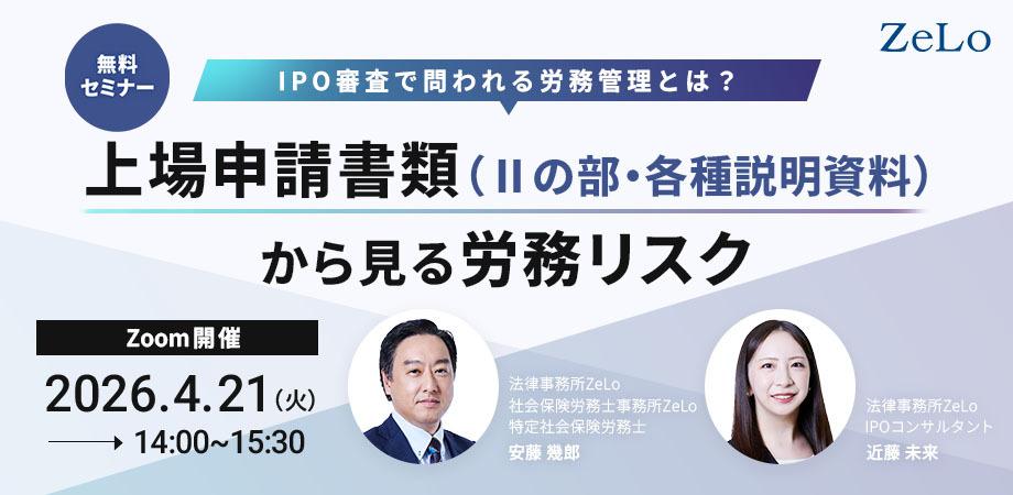 セミナー「IPO審査で問われる労務管理とは?上場申請書類(Ⅱの部・各種説明資料)から見る労務リスク」について