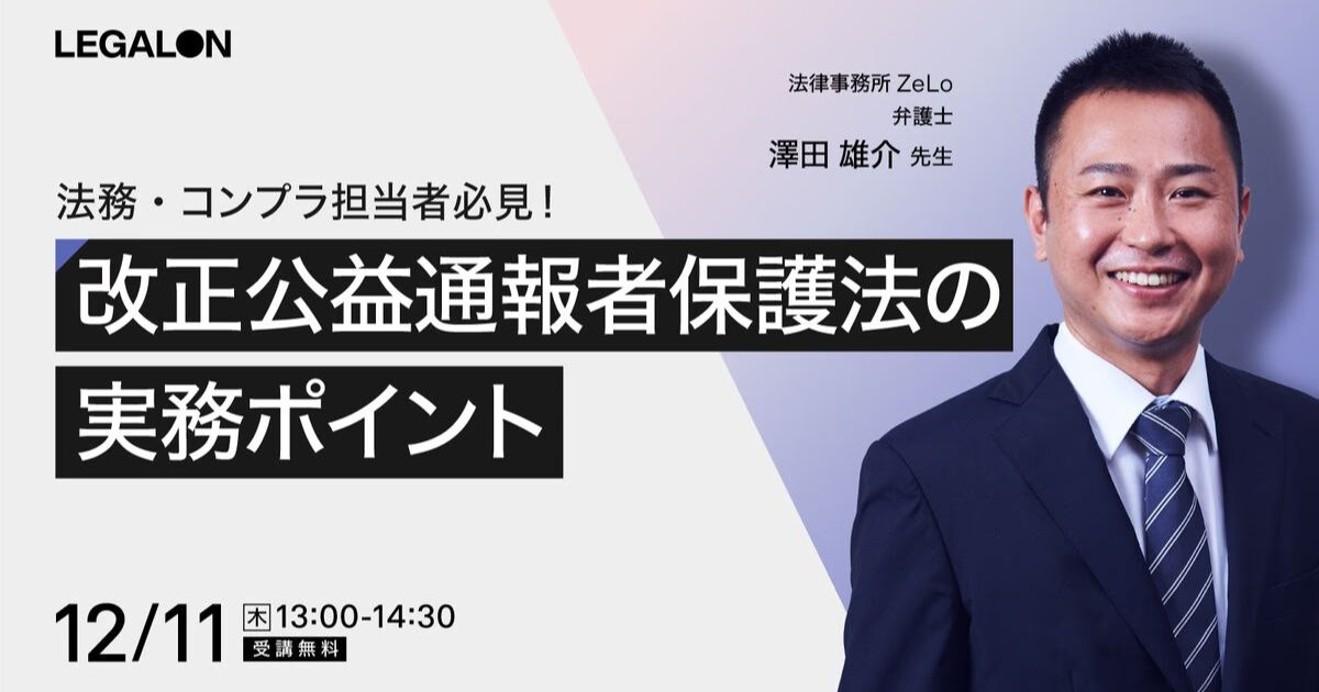 セミナー「法務・コンプラ担当者必見!改正公益通報者保護法の実務ポイント」について