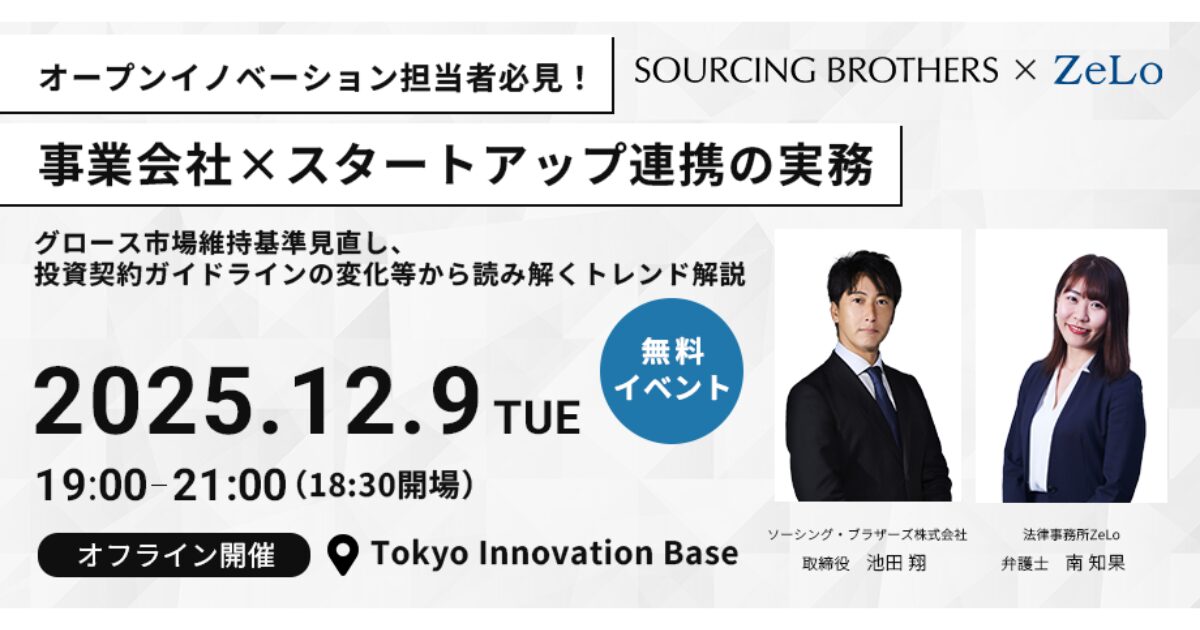 【オフライン限定】オープンイノベーション担当者必見!事業会社×スタートアップ連携の実務-グロース上場維持基準見直し、投資契約ガイドラインの変化等から読み解くトレンド解説