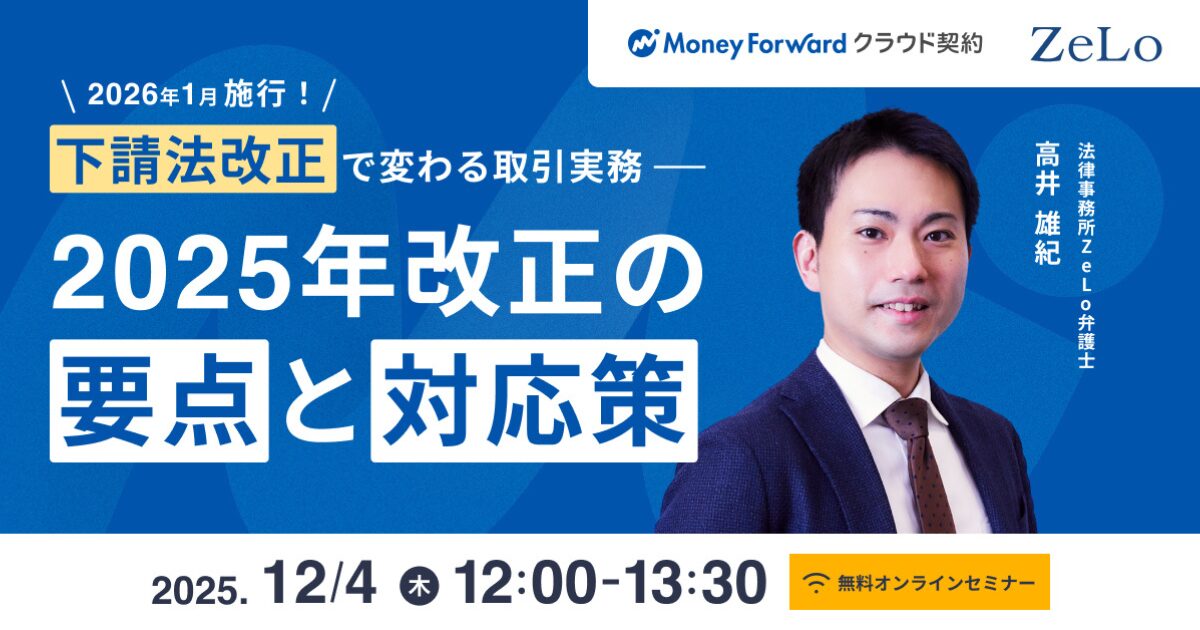 セミナー「2026年1月施行!下請法改正で変わる取引実務―2025年改正の要点と対応策」について